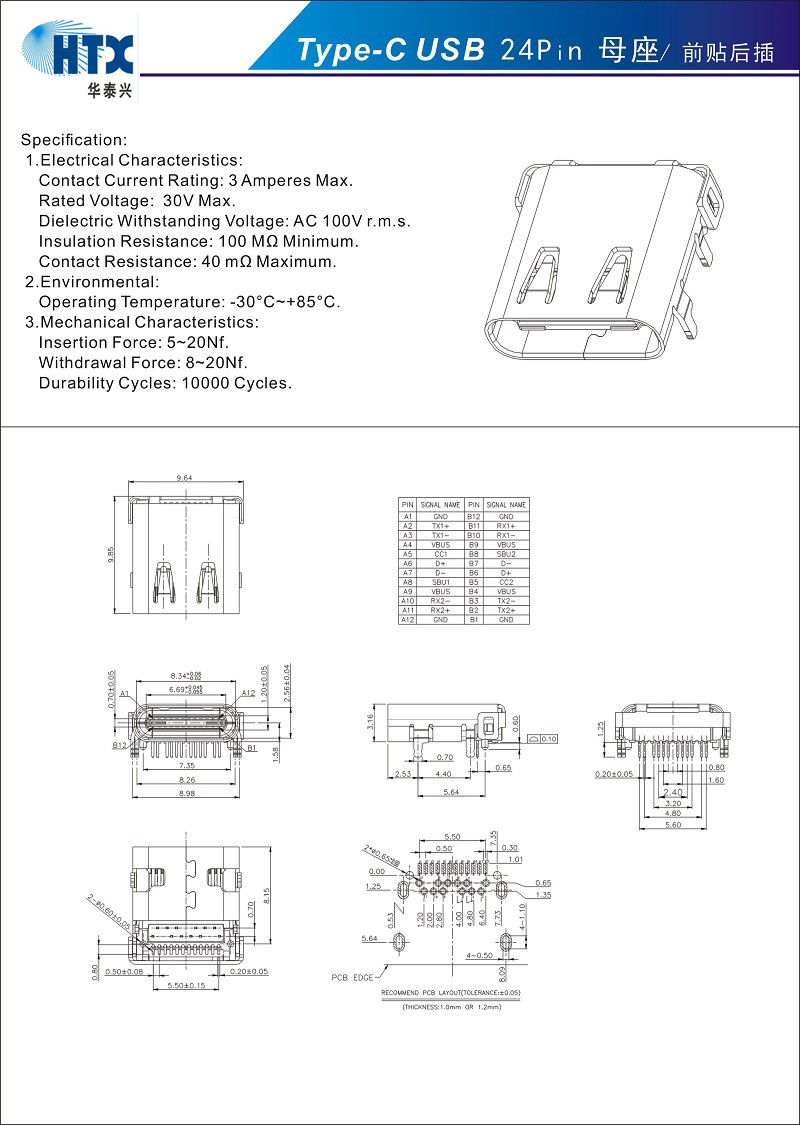 您的位置:首頁 > 產品展示 > USB連接 > Type-C母座 24Pin 前插后貼 TypeC連接器母座