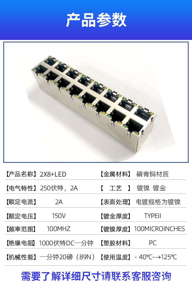 RJ45屏蔽網絡插座2x8帶燈帶彈