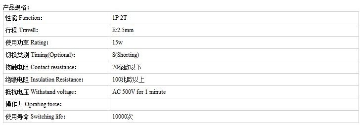 相關推薦: 小型船型開關,蹺板船型開關,雙復位船型開關,四腳輕觸開關,手機輕觸開關,銅頭輕觸開關,三檔撥動開關,六腳撥動開關,usb插座,耳機插座