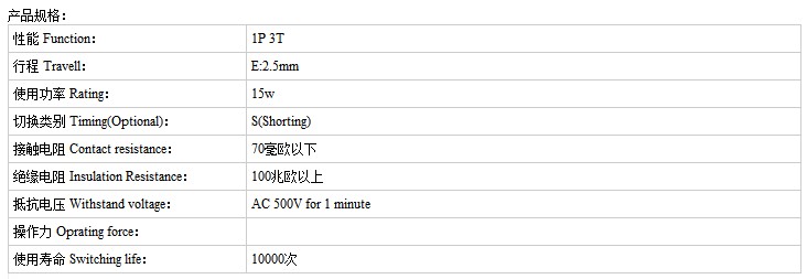 相關推薦: 小型船型開關,蹺板船型開關,雙復位船型開關,四腳輕觸開關,手機輕觸開關,銅頭輕觸開關,三檔撥動開關,六腳撥動開關,usb插座,耳機插座